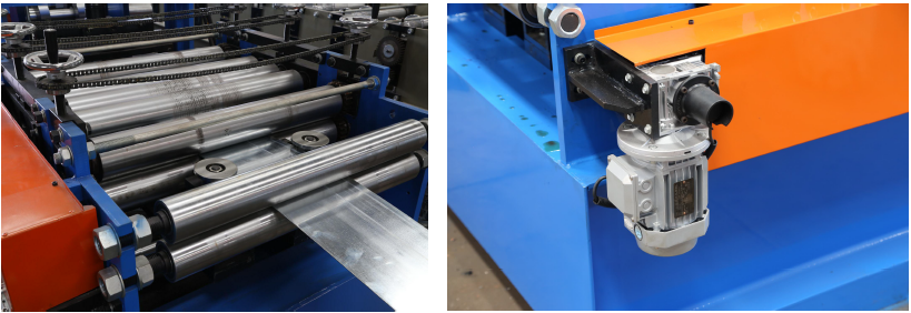 電機駕駛,齒輪鏈傳動,15個滾輪,形成5輥(2個上輥和3個向下滾筒),用於矯直;