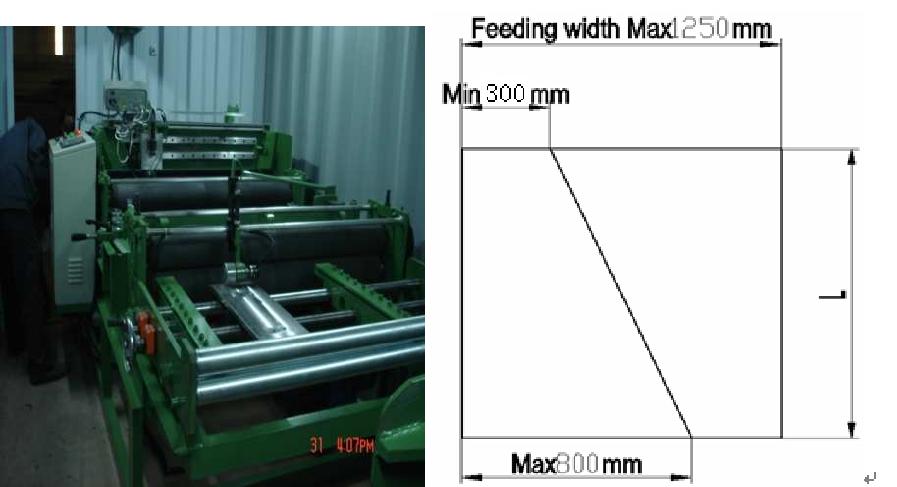 0.5mm-0.8mm,鋼材張力:G300MPA切割線圈寬度:MAX.800mm切割線圈寬度:min.300mm切割速度:約13m / min
